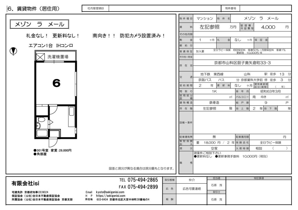 ●更新事務手数料 11,000円(税込) ●全日ラビ-保険(2年)18,000円 ●家賃保証会社加入要